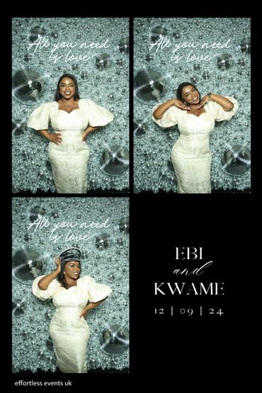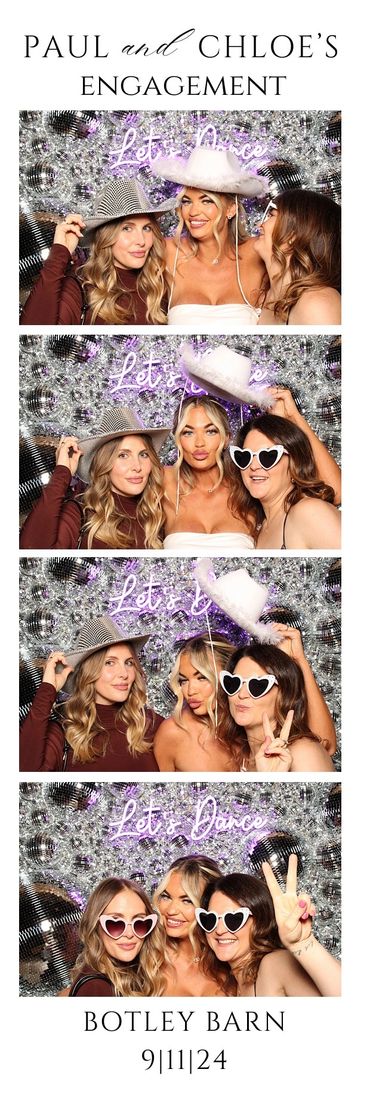 The Photo Booth pictures will be grouped onto a template and personalisation is added to represent the style and theme of your event.