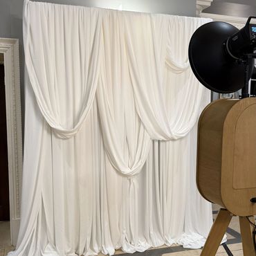 Pictured above: Vintage Photo Booth, Ivory Drapes